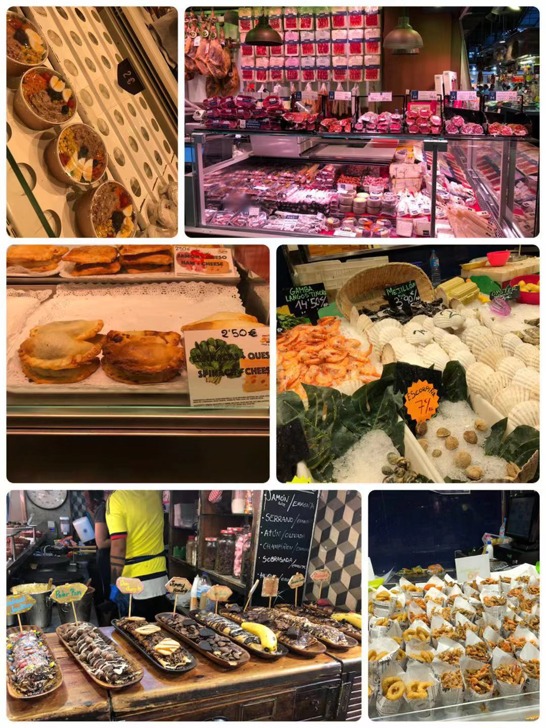 A narrow alley can lead tourists from Las Ramblas to renowned La Boqueria Market. Although this is a world-known scenic spot, food and drinks are at reasonable price here. There are still numerous locals buying food here. Ham with cheese is what you cannot miss. For most Chinese people, ham may be a little salty and cheese is too rich to eat, so it is sensible to share it with your friends. Restaurants for tapas and paella are almost ubiquitous at this area, and do not forget about Sangria. All these delicious foods can make a good start for your journey.